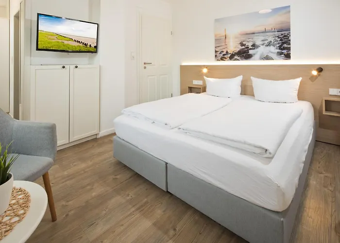 ホテル Haus Menno Janssen - Doppelzimmer ノルダ-ナイはStella Marisから歩いて5分で,Öffentliche Bibliothek im Conversationshausから歩いてたった6分の場所にあります.